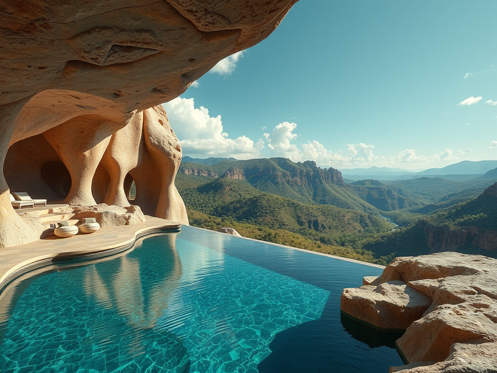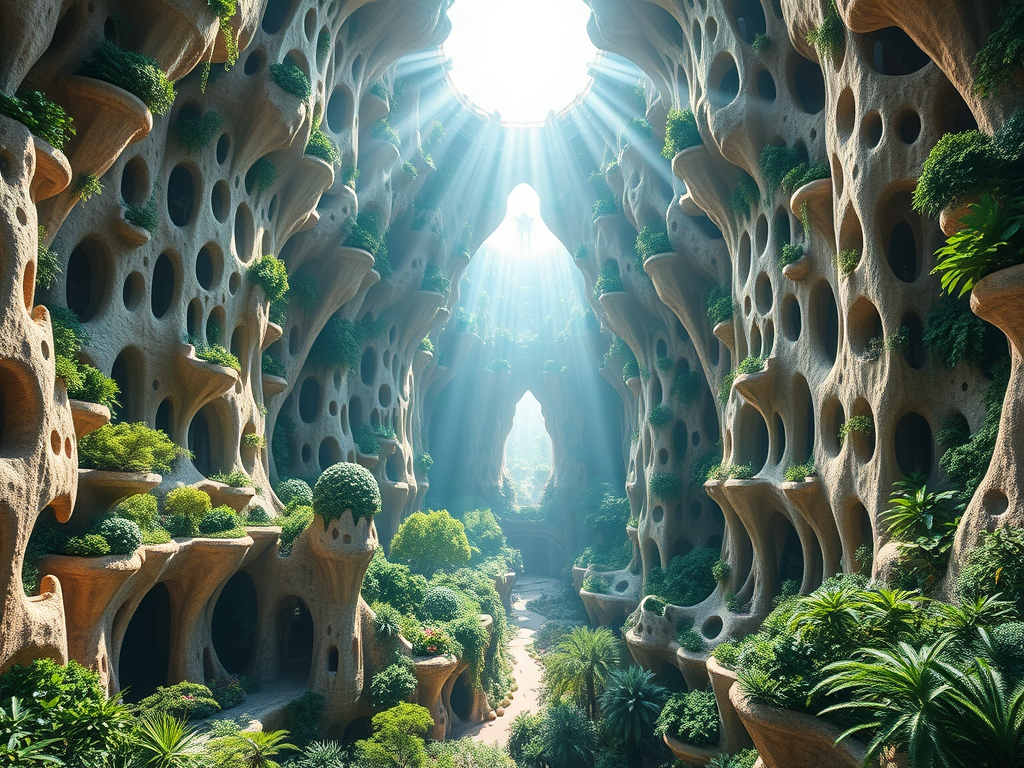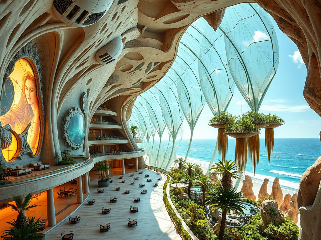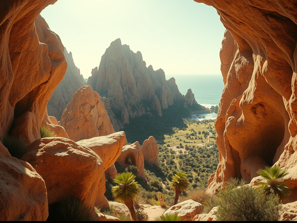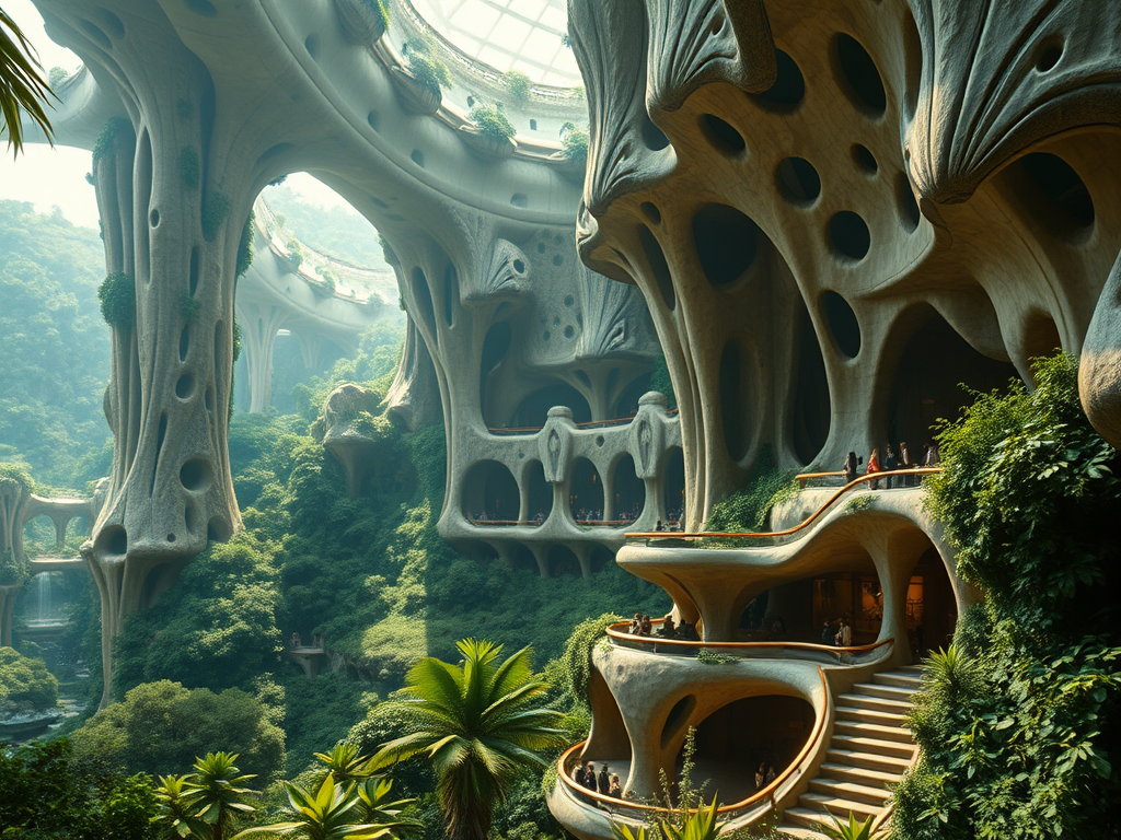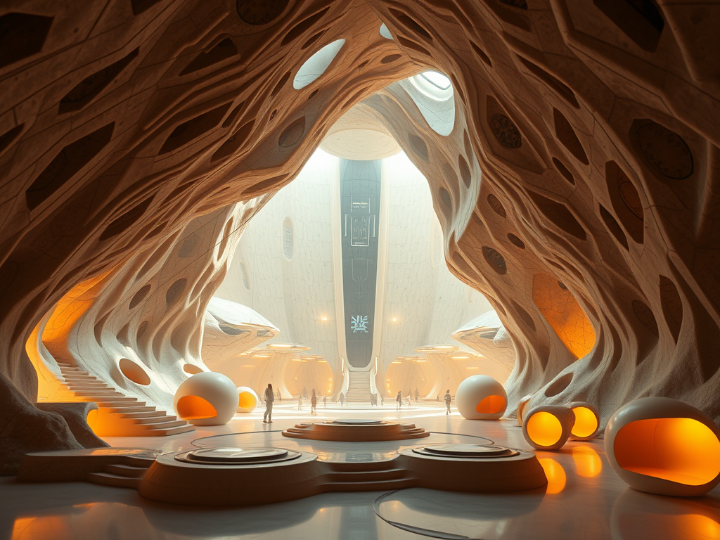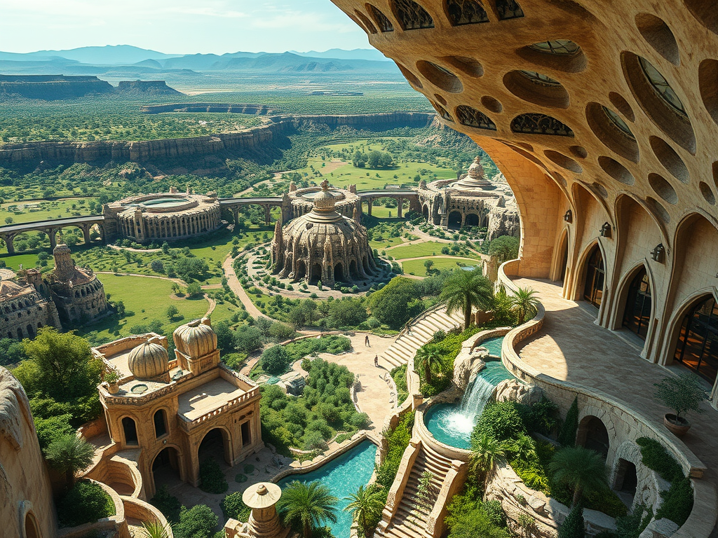 Above: Artist’s impression, generated by OpenAI, of the coming era, in which humans will no longer primarily live in coastal areas, but in mountains and rock formations, as they did in prehistoric times. The impressions are often imperfect in detail. They are partly inspired by my visit in 2024 to the area around the Aasvoelkrans Cave, Kwazulu-Natal, South Africa.