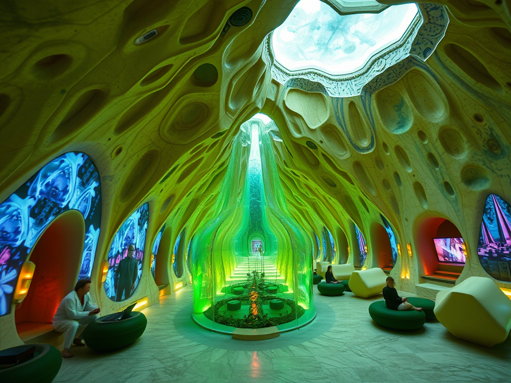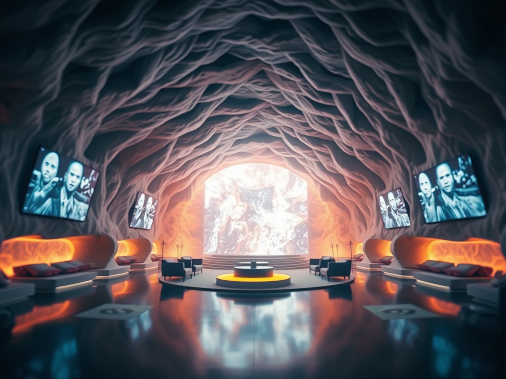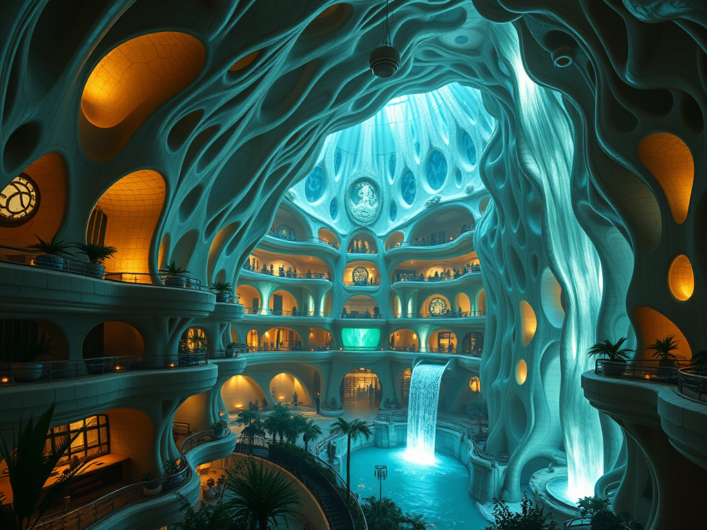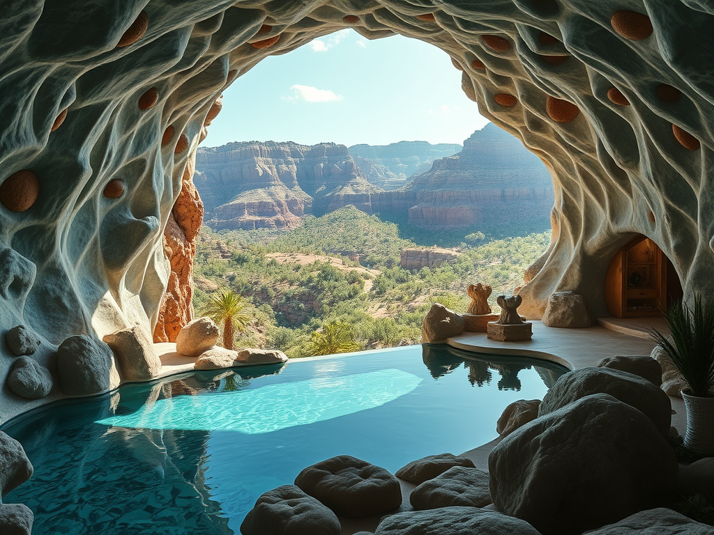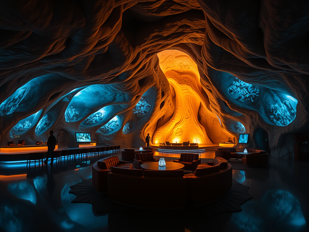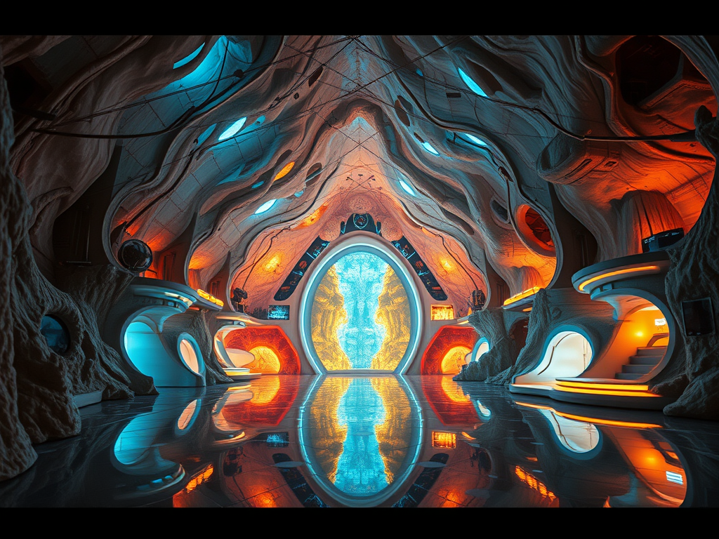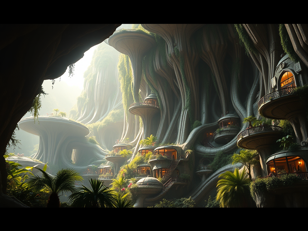 Above: Artist’s impression, generated by OpenAI, of the coming era, in which humans will no longer primarily live in coastal areas, but in mountains and rock formations, as they did in prehistoric times. The impressions are often imperfect in detail. They are partly inspired by my visit in 2024 to the area around the Aasvoelkrans Cave, Kwazulu-Natal, South Africa.